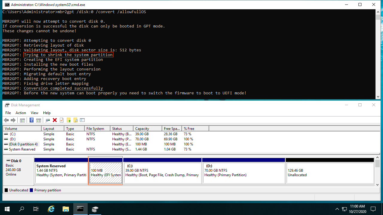 2. Converter MBR para GPT no Windows 10 com o comando MBR2GPT