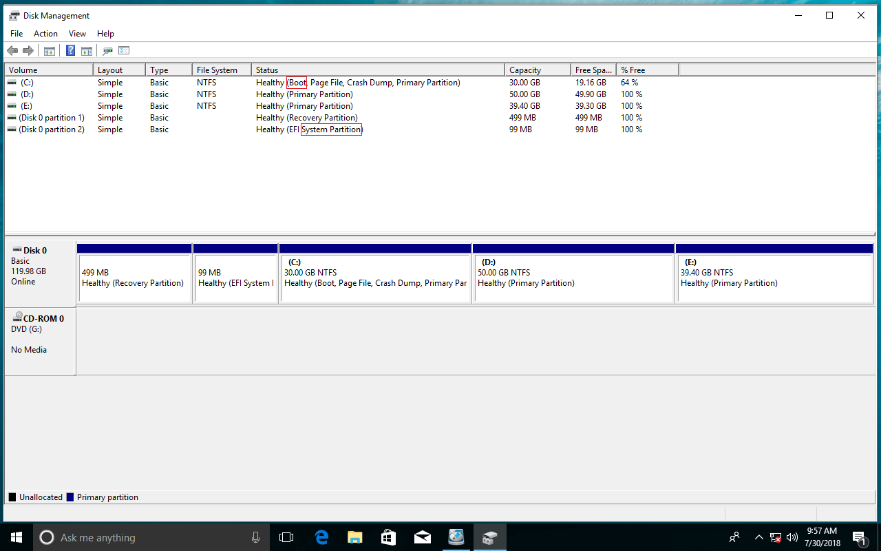 2. Estender a partição do sistema no Windows 10 com a ferramenta Gerenciador de Disco