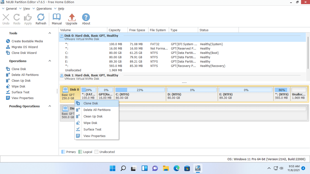 - O NIUBI Partition Editor pode clonar disco/partição no Windows sem reiniciar o computador.