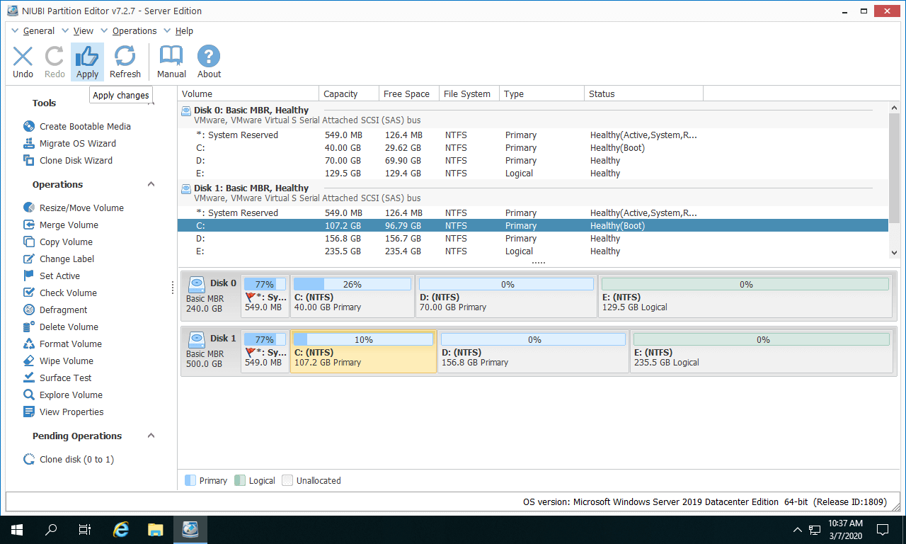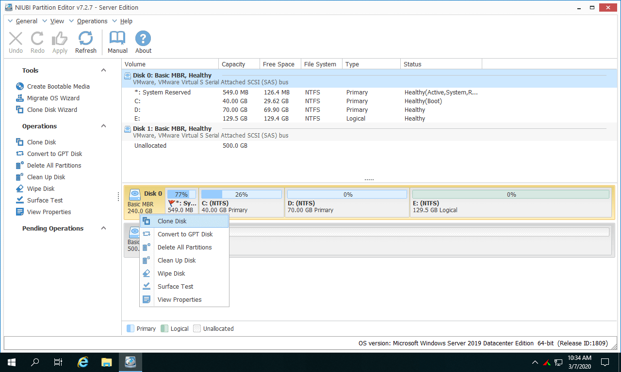 Passos para copiar a partição no Windows Server 2019/2022 com o NIUBI Partition Editor: